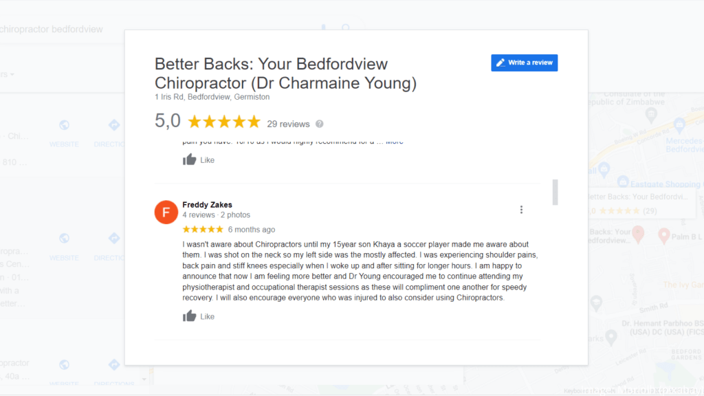 Many patients do not know much about Chiropractic and how it works. These patients share their stories with you, to help you have a better idea on what to expect when visiting your Bedfordview Chiropractor. Would you like to share yours?