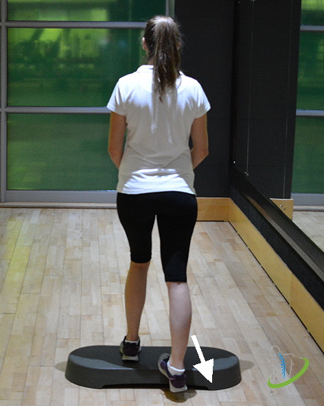 2.) Keep the left foot forward and place the middle of your right foot on the step.